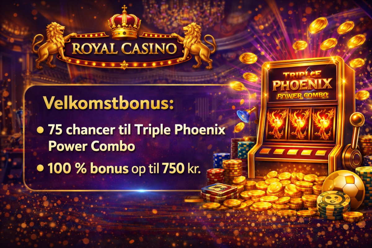 Gå til royalcasino.dk og klik på “Opret konto”. Du verificerer din identitet med MitID – det er et lovkrav fra Spillemyndigheden, og det sikrer, at du ikke er registreret i ROFUS (Register Over Frivilligt Udelukkede Spillere). Dine 75 chancer til Triple Phoenix Power Combo krediteres automatisk efter godkendt oprettelse.